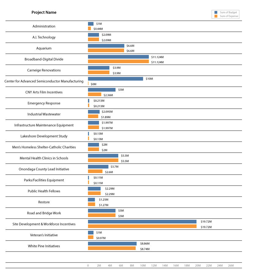 Onondaga County usde these funds to support development at the White Pine Business Park as we prepare the infrastructure and workforce for the recently announced $100 billion Micron Semi-Conductor Manufacturing complex project. This once in a lifetime transformational economic development opportunity will completely transform the county over the next 20 years. This will result in the creation of over 9,000 jobs on site and bring 40,000 spin-off jobs to the area. These funds to pay for necessary physical infrastructure improvements that will include road improvements and site clearing, as well as providing critical workforce and community infrastructure improvements.